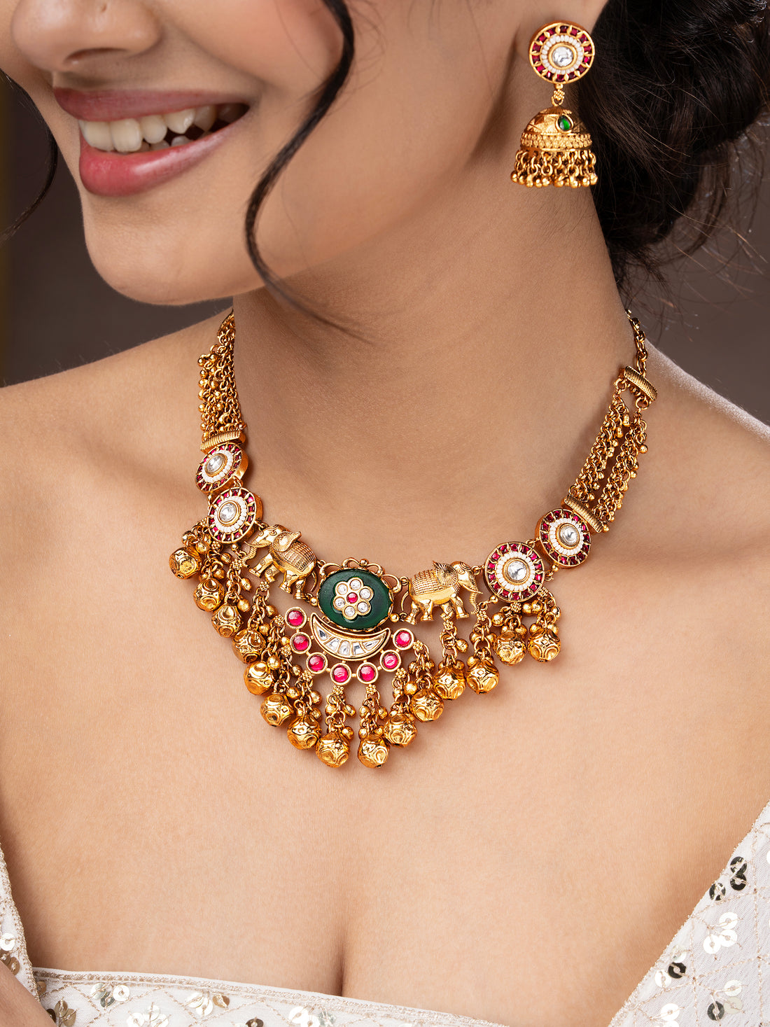 Material: Gold Plated Brass, Kundan, Jade Stones