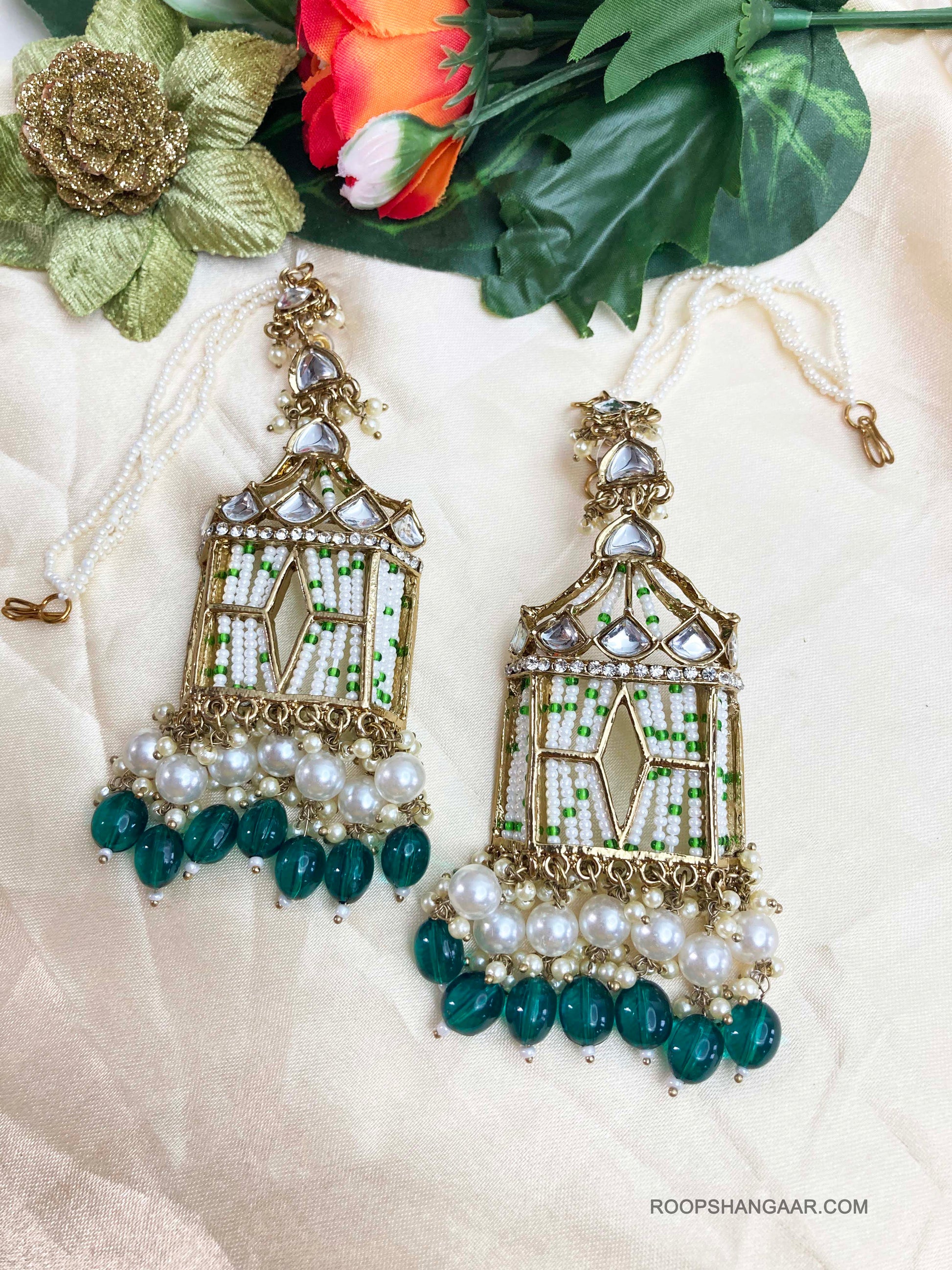 Adorn yourself with our exquisite chandbali earrings, a true testament to the blend of antique and contemporary Indian fashion. These ornate earrings, embellished with kundan and polki detailing, exude the timeless charm of bridal jewelry. Whether it's your wedding day or the vibrant haldi ceremony, these pieces add a touch of regal elegance, ensuring you stand out in bollywood-style glamour, making a bold statement on any occasion.