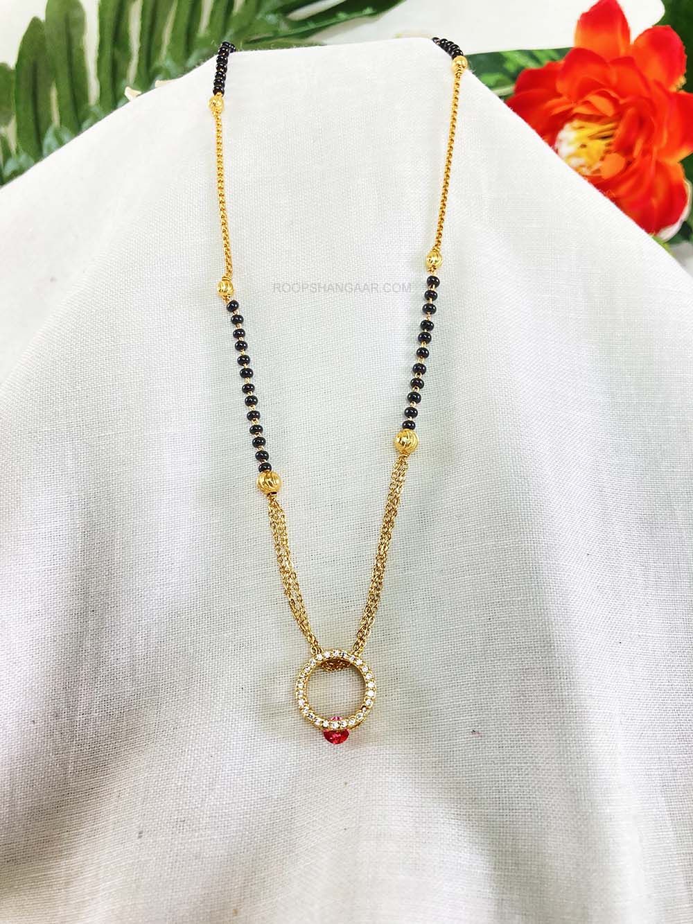 Get ready to be captivated by this extraordinary mangalsutra, far from ordinary! Designed to grab attention, it effortlessly combines traditional elements with a touch of glamour. Adorned with dazzling American Diamonds, it exudes a fashionable allure while retaining its timeless significance. This unique piece seamlessly blends the grace of tradition with the sparkle of diamonds, making it a perfect fusion of elegance and style.