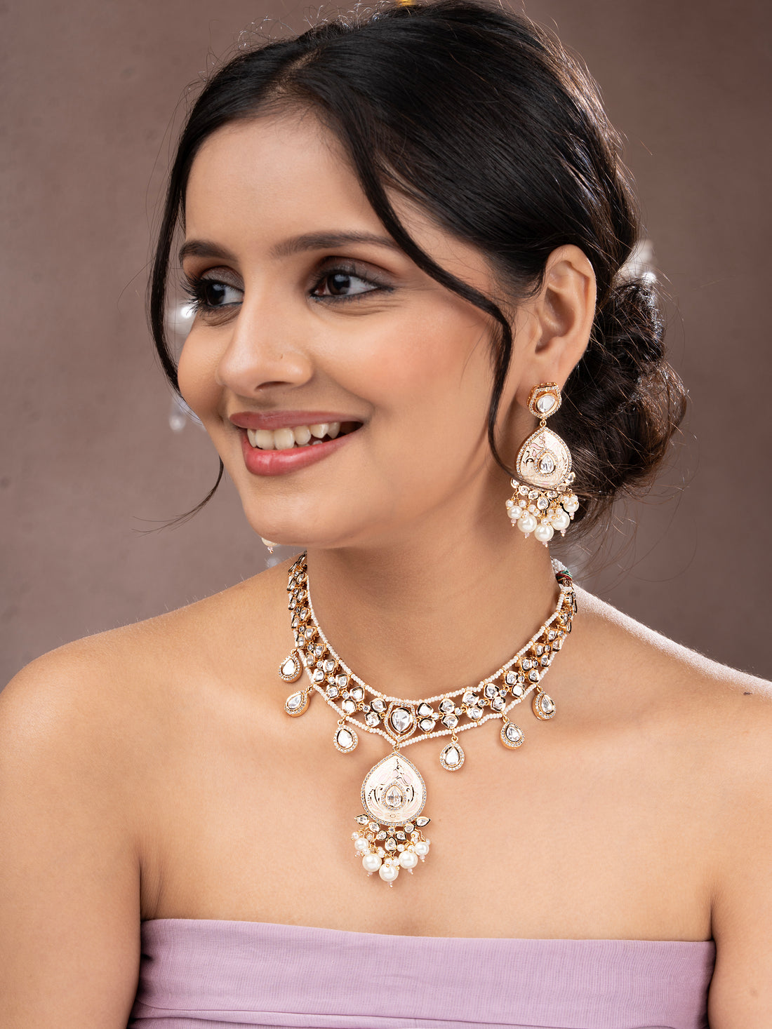 Kalaash Polki Pink Minakari Jewellery Set