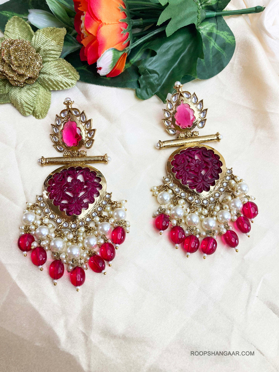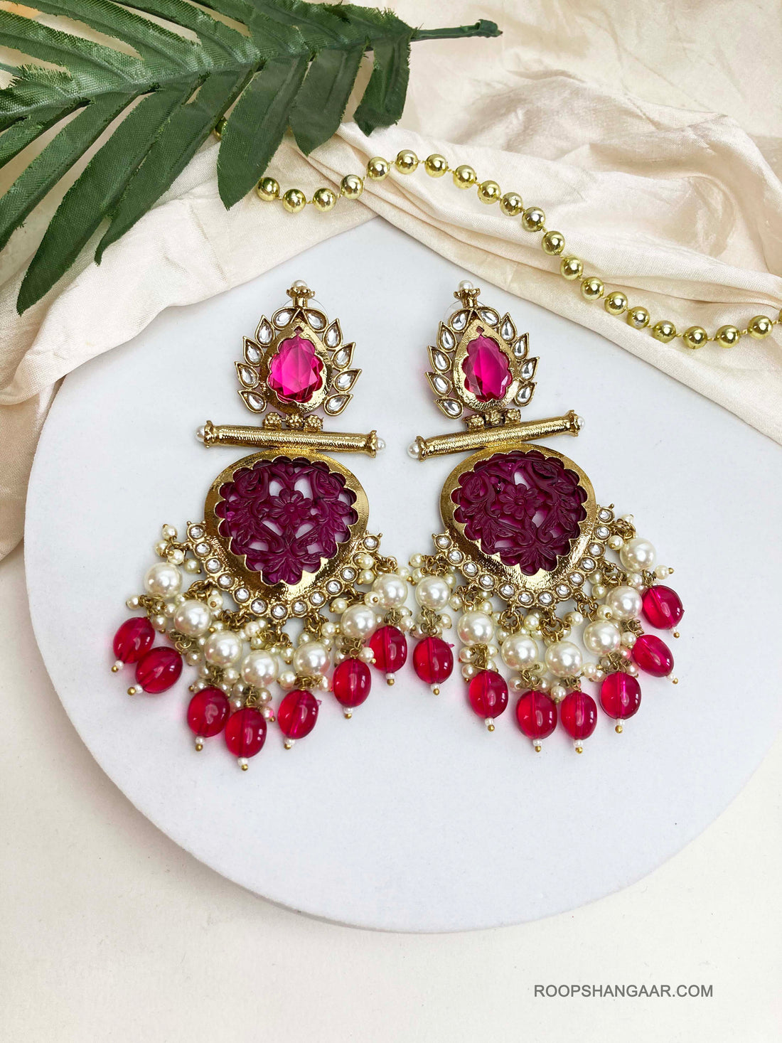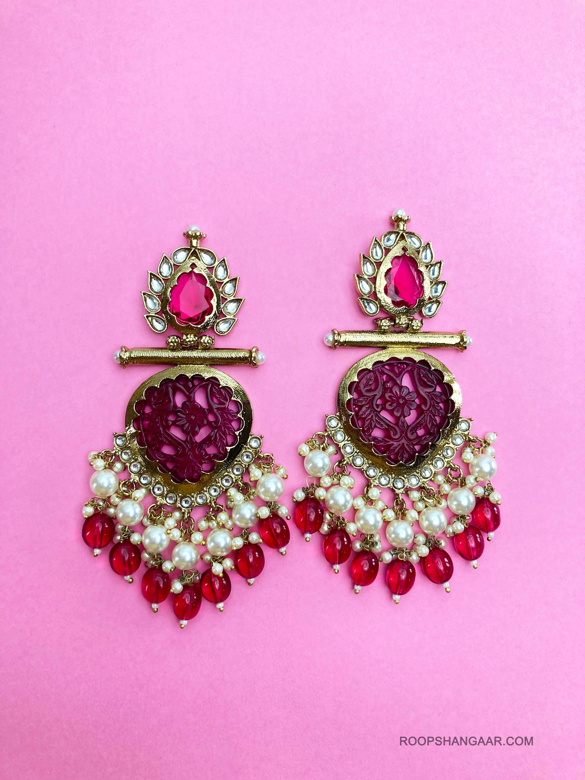 Adorn yourself with our exquisite chandbali earrings, a true testament to the blend of antique and contemporary Indian fashion. These ornate earrings, embellished with kundan and polki detailing, exude the timeless charm of bridal jewelry. Whether it's your wedding day or the vibrant haldi ceremony, these pieces add a touch of regal elegance, ensuring you stand out in bollywood-style glamour, making a bold statement on any occasion.